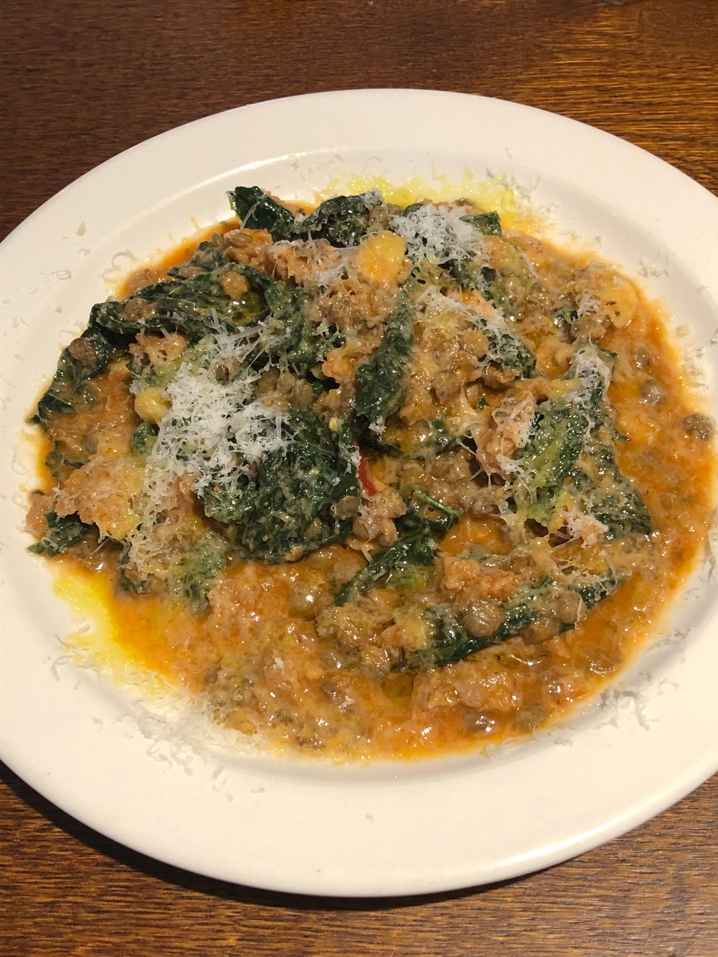 Sausage ragu, lentils, cavolo nero