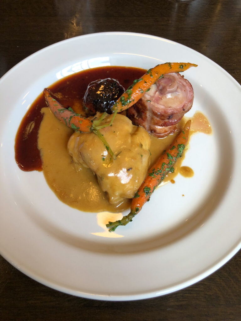 I hope it gets a wee bit busier for everyone’s sake, especially as you’ll be missing out on some great food. Starting with the duck, pork and guinea fowl terrine, this may have looked plain – if it was plastered on a billboard I doubt it would stop traffic – but there is always more than meets the eye. Crikey it was good, from the pastry casing to the layers of flavour and textures within. Clearly a lot of work had gone in to it. All I can say is “chapeau.”